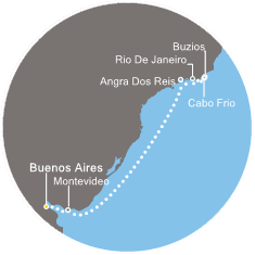 Buenos Aires (Argentina) > Montevideo (Uruguay) | Montevideo (Uruguay) > Angra dos Reis (Brasil) | Angra dos Reis (Brasil) > Buzios (brasil) | Buzios (brasil) > Cabo Frío (Brasil) | Cabo Frío (Brasil) > Río de Janeiro (Brasil).