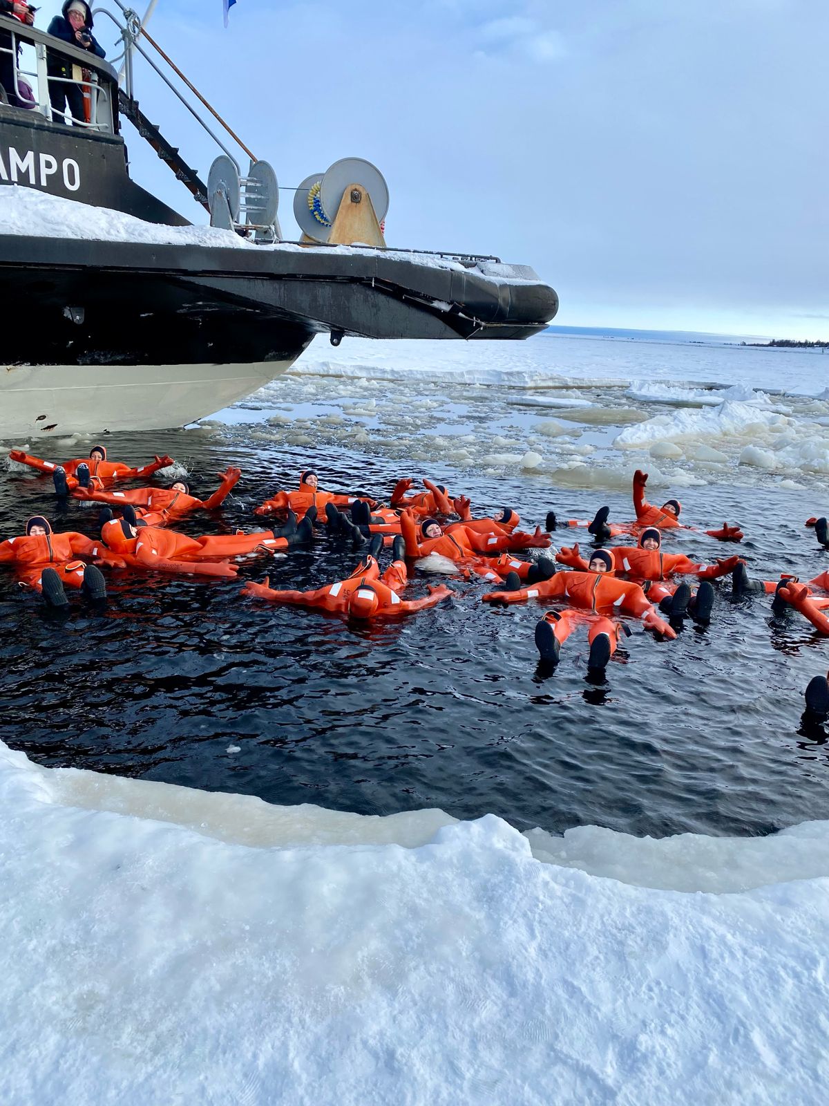A BORDO, REALIZAREMOS UNA VISITA GUIADA Y UNA PARADA EN LA QUE DESCENDEREMOS A MAR ABIERTO VESTIDOS CON TRAJES TÉRMICOS PARA FLOTAR EN EL MAR CONGELADO, EXPERIENCIA ÚNICA (NO OBLIGATORIA).
